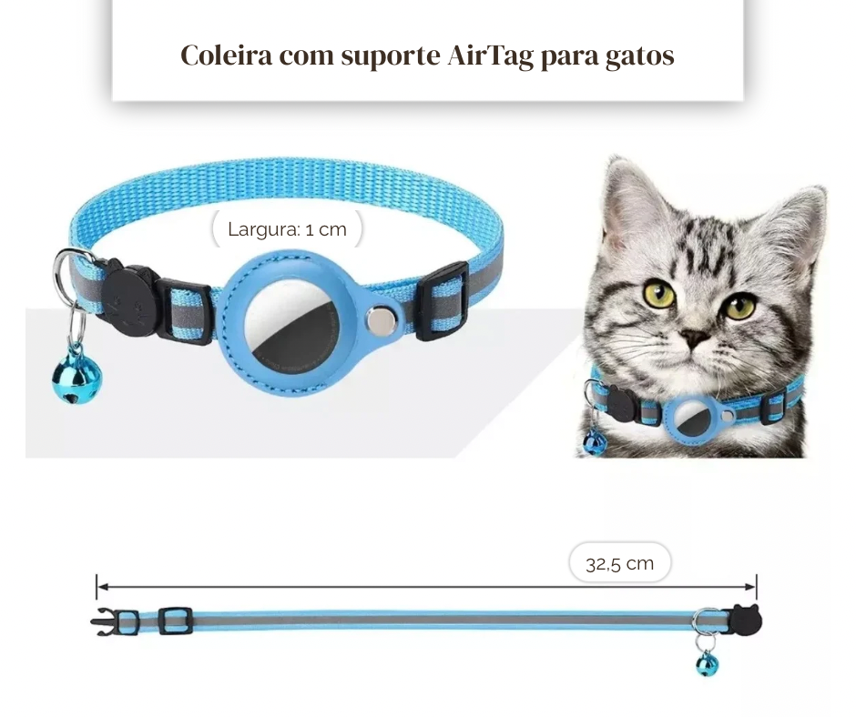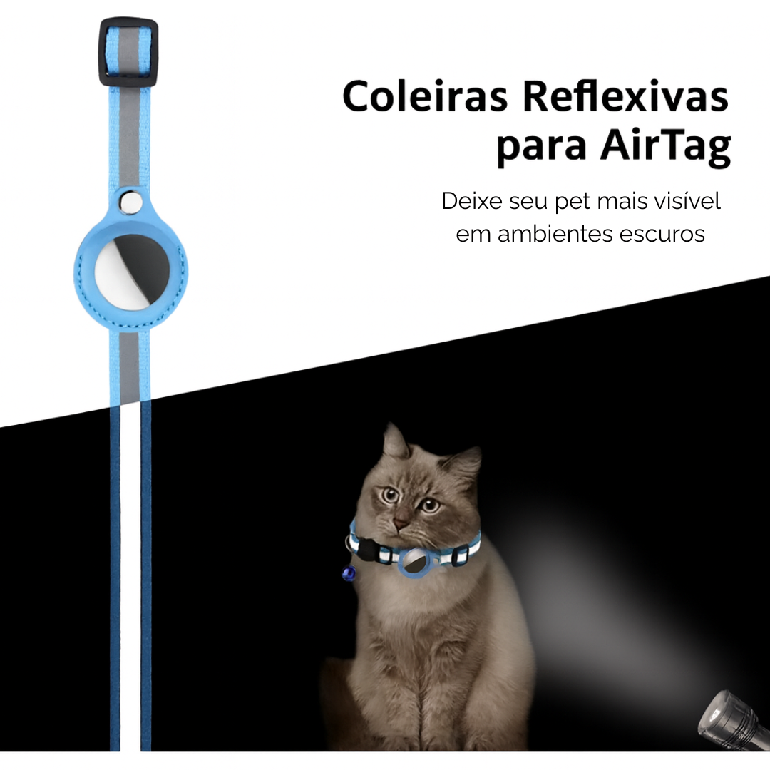 🐾 Coleira Ajustável para Gato com Suporte AirTag e Detalhes Reflexivos