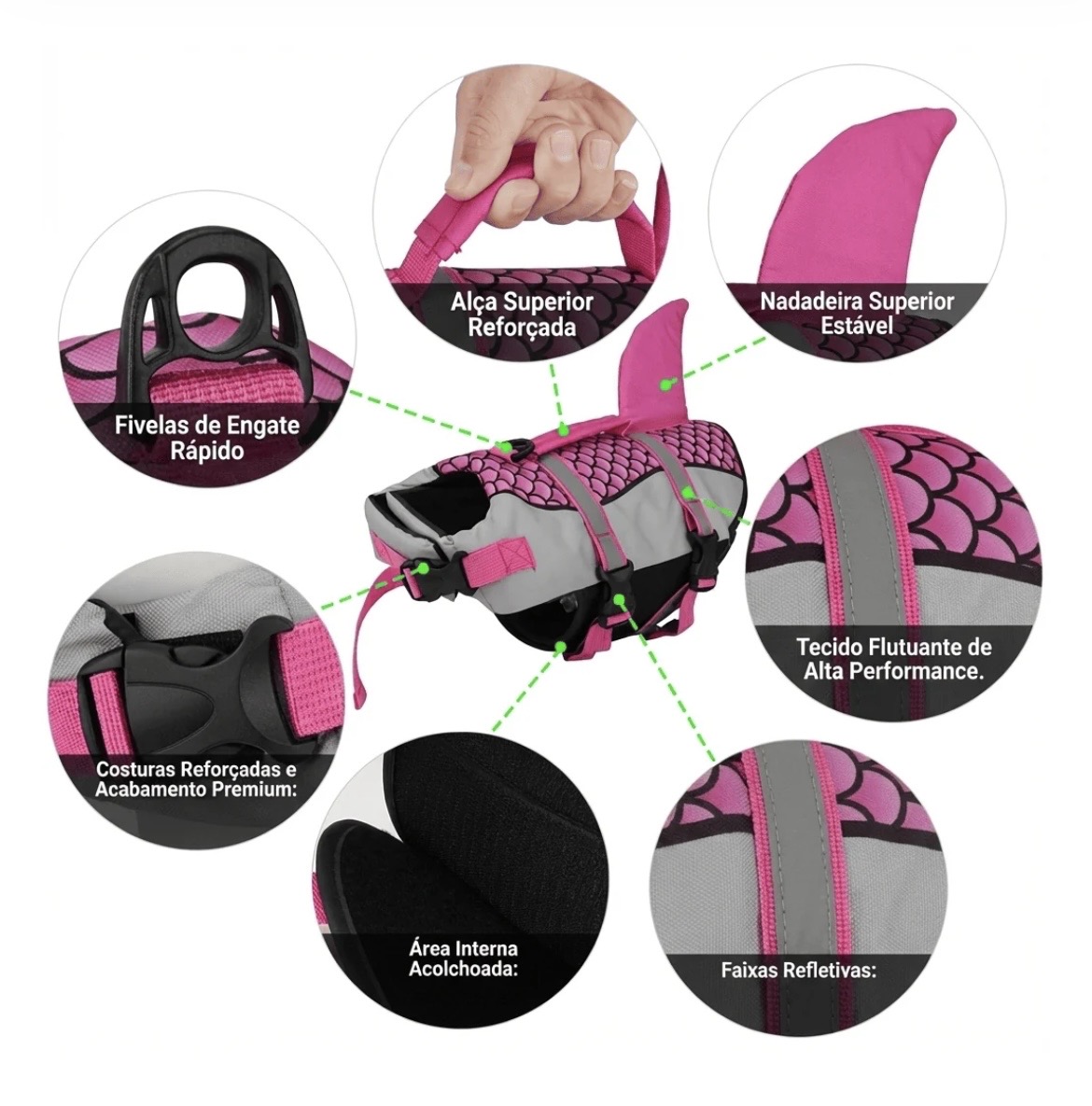 ✔️ Tecido flutuante de alta performance – mantém o pet sempre na posição correta na água