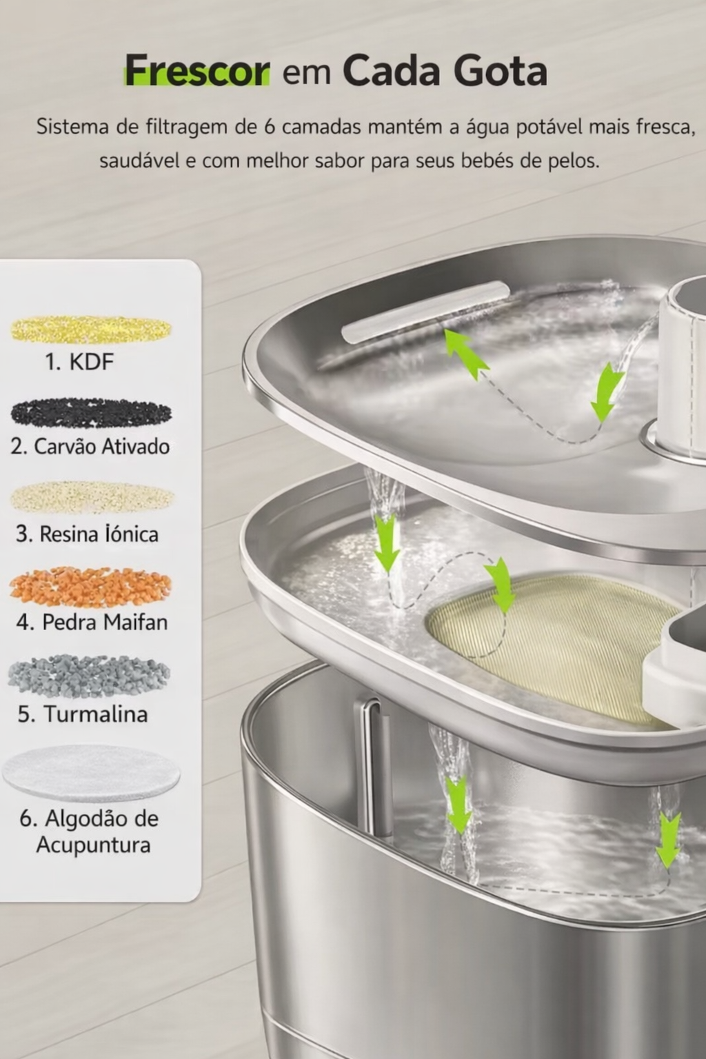 Tudo isso para manter a água sempre limpa, fresca e sem odores 🌿
