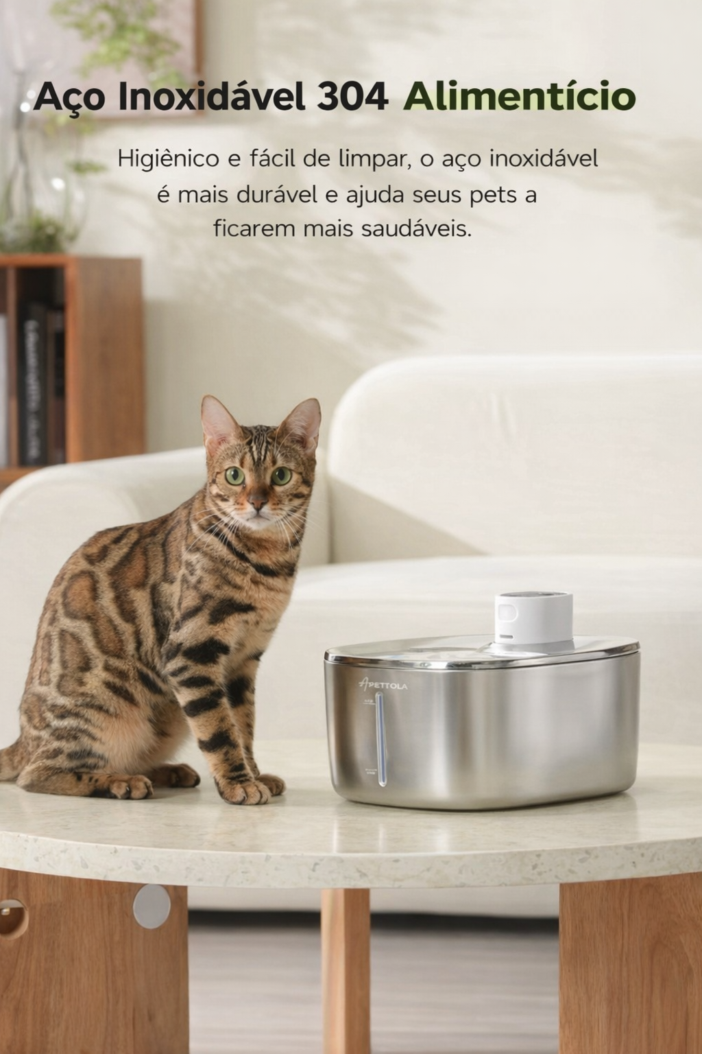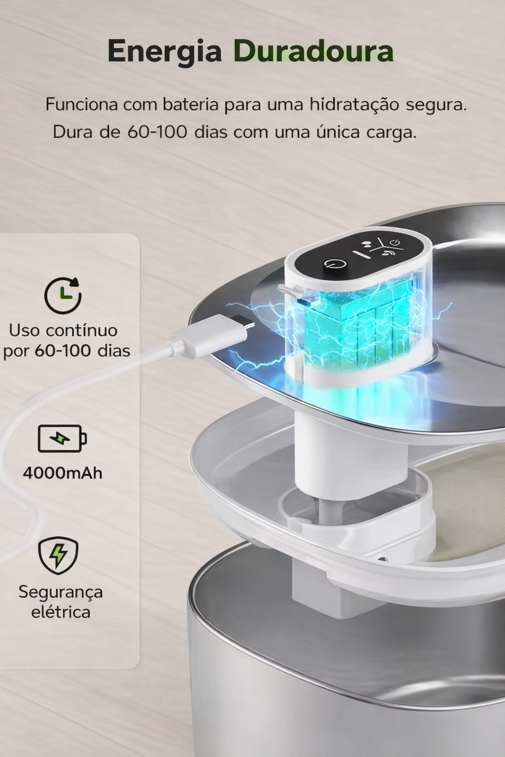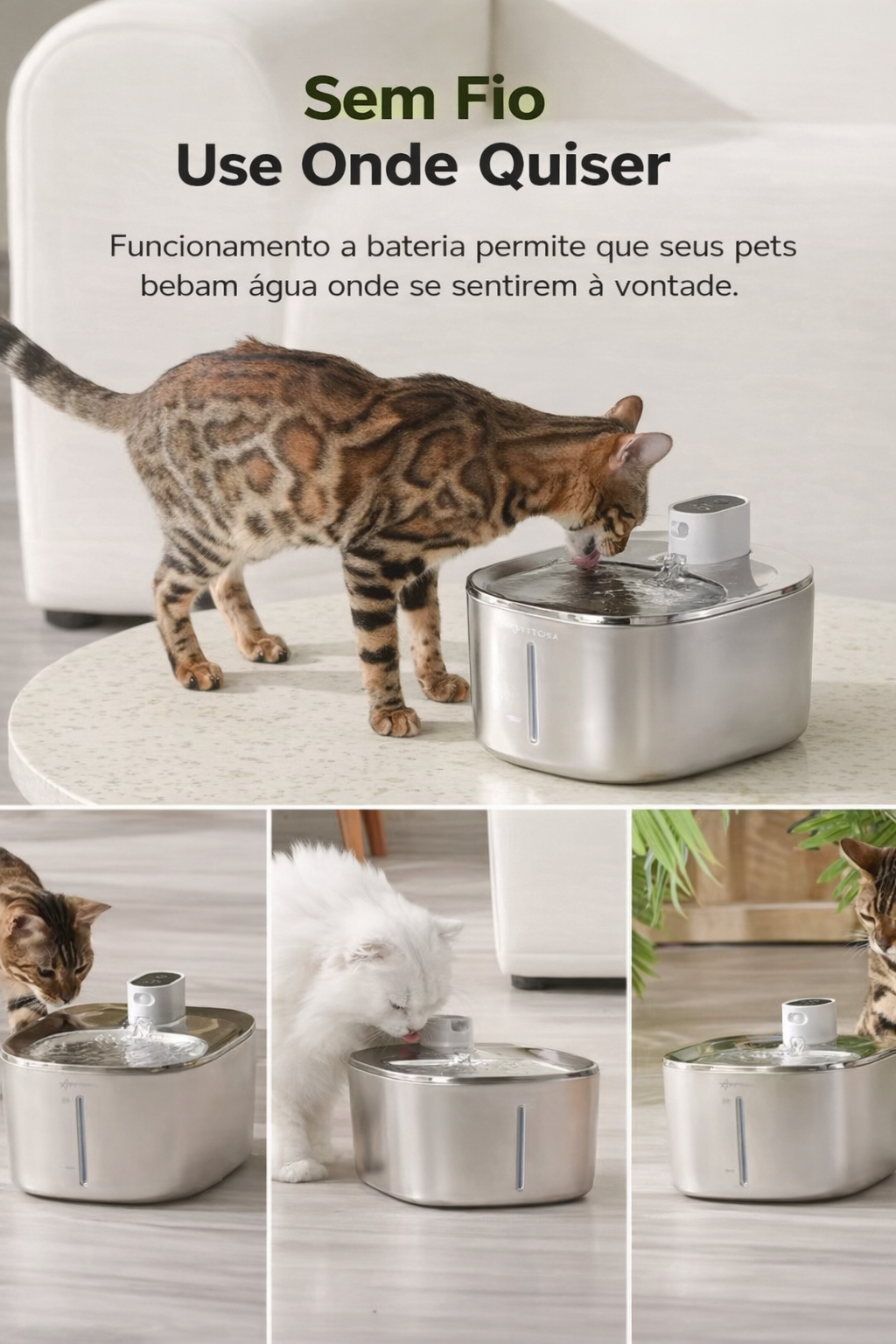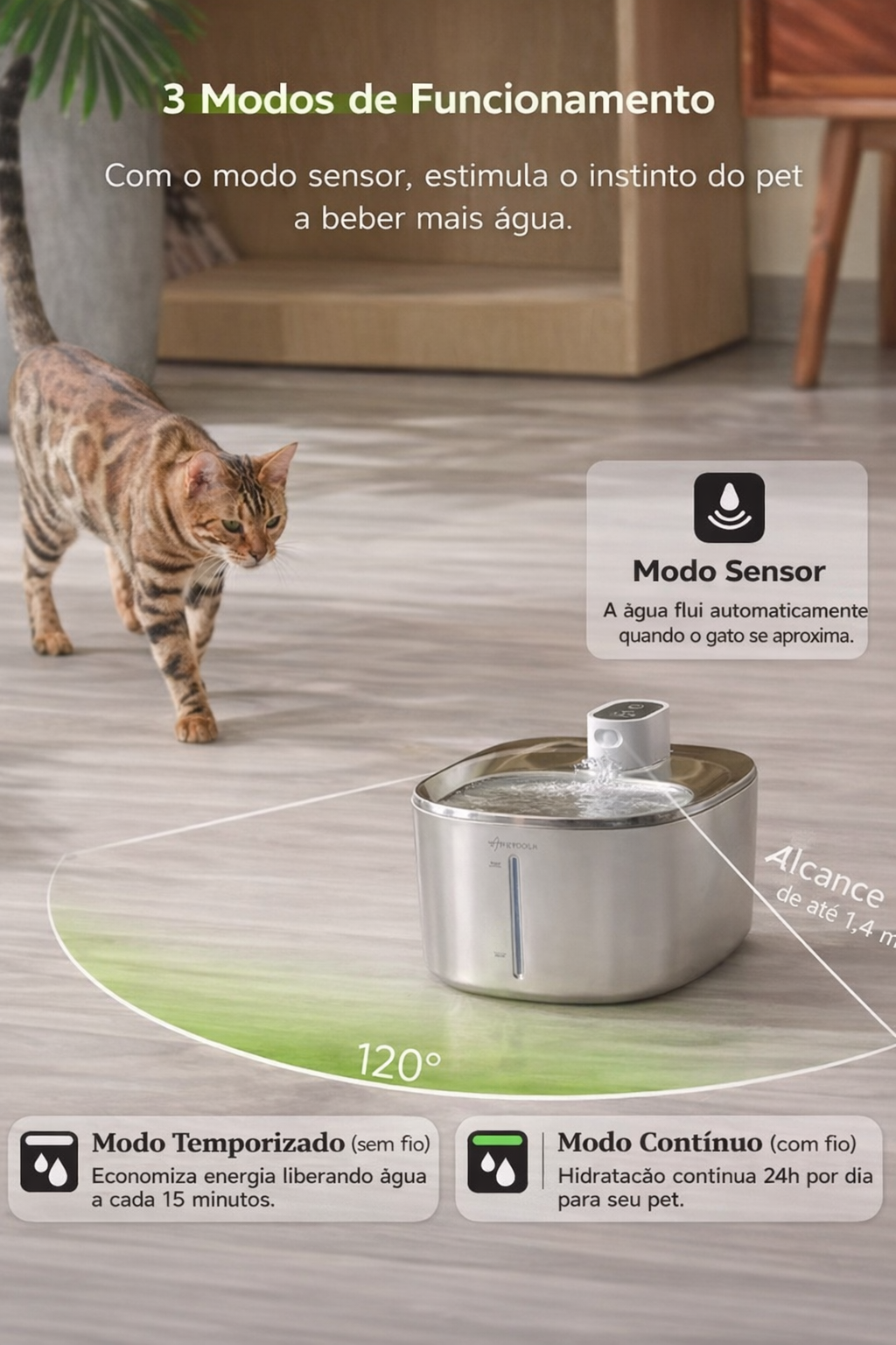 A água é ativada automaticamente quando o pet se aproxima, incentivando o consumo e evitando desperdício 💦